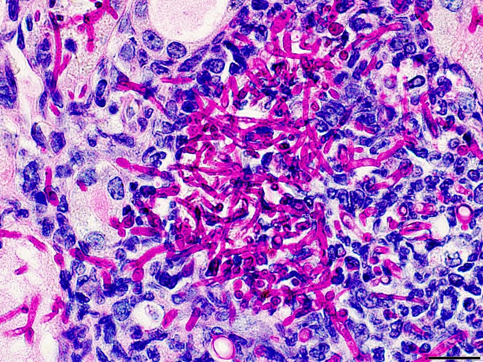 The fungus Candida albicans causes infections that range from superficial on the skin and nails to invasive into organs and the bloodstream. In recent decades, systemic candidiasis has increased due to more patients with immunosuppression from disease or treatments, prolonged antibiotic exposure, and certain conditions such as kidney disease. Management of systemic candidiasis has become more difficult because of antifungal drug resistance, limited early diagnostic tools, and absence of approved fungal vaccines.
