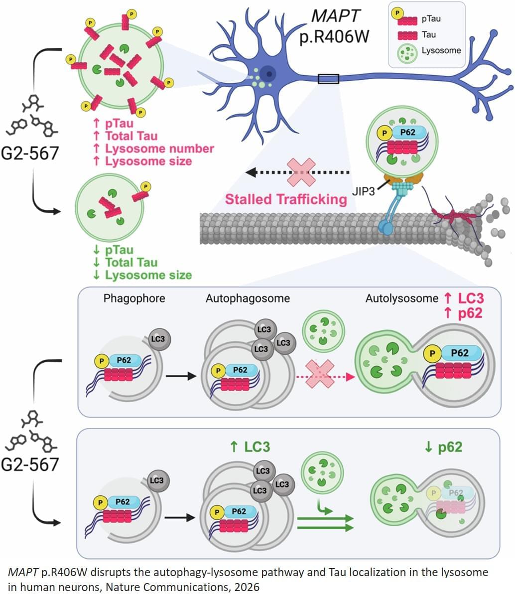 In this new study, the researchers studied neurons that had been reprogrammed from skin cells sampled from patients with frontotemporal dementia who carried the tau mutation. In the neurons, the mutated tau proteins caused waste-recycling centers called lysosomes, which are involved in autophagy, to become dysfunctional, allowing cellular waste to accumulate in the lysosomes, which may contribute to neuronal death. The researchers found that enhancing autophagy with an analog of the chemical compound G2 improved clearance of the garbage, reduced tau levels in the lysosomes and prevented cellular toxicity and death.