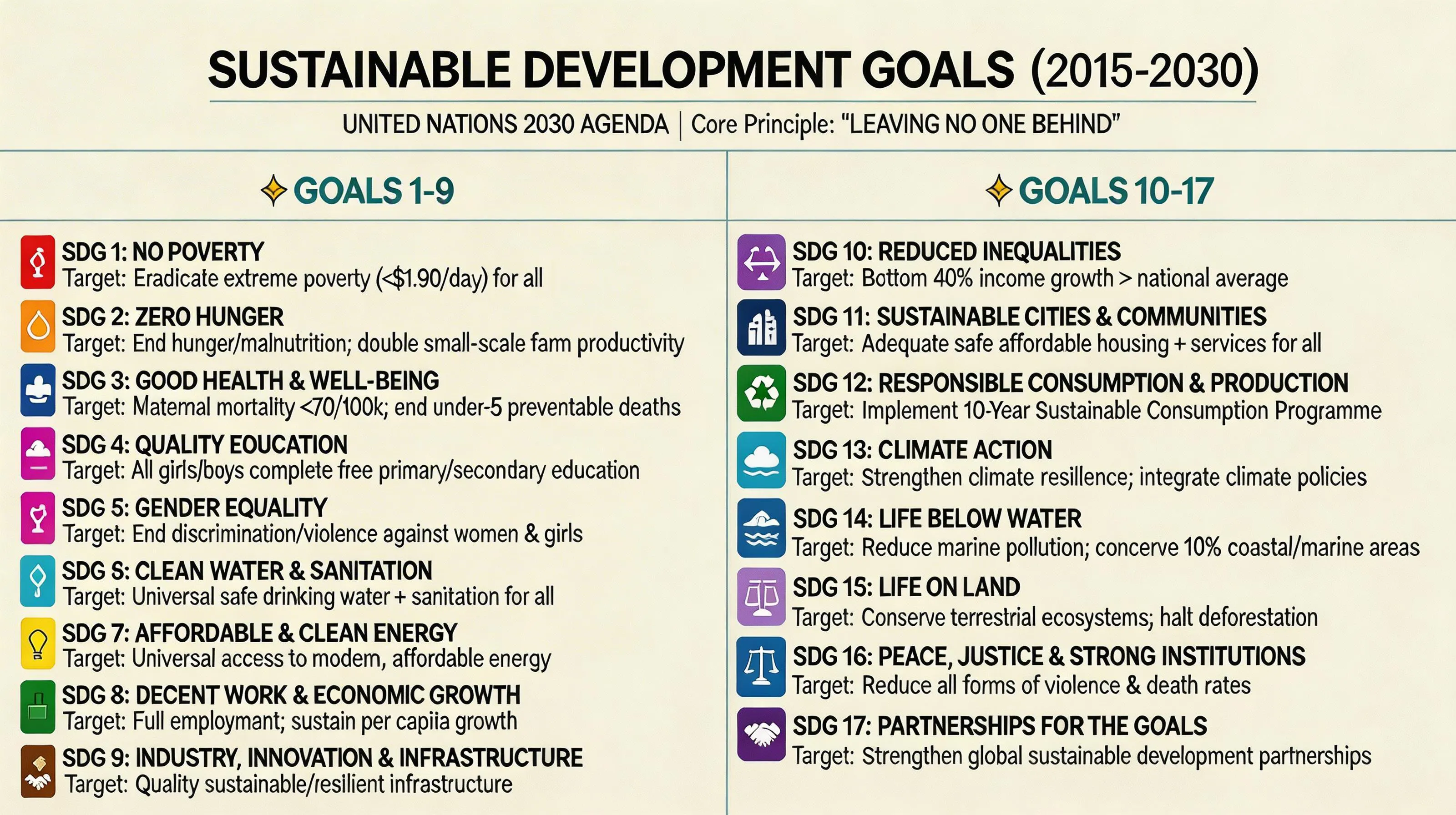 | Partnerships for the Goals | Strengthen global partnership for sustainable development through finance, technology, capacity-building |